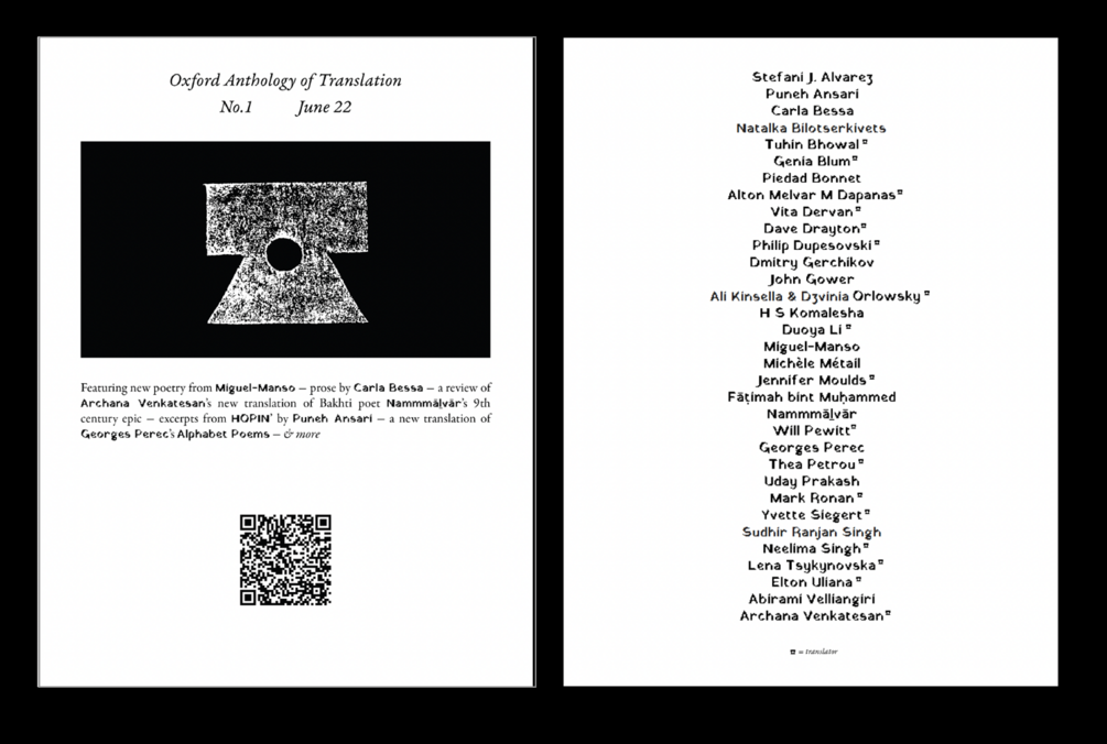1 print copy of Issue 1 of the Oxford Anthology of Translation + a high quality PDF